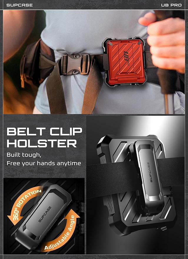 - 360° Rotatable Belt Clip for Hands-Free Carry - Features side-release buckles for easy attachment to the case. 30° open-angle design securely clips onto belts or backpack straps—ideal for daily work or outdoor activities. Quick access, effortless carrying.