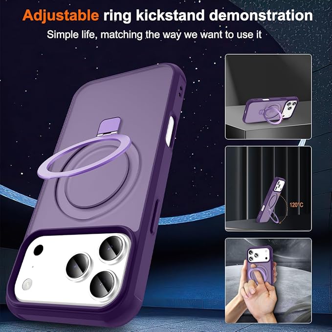 - 【Metal Ring Stand】Designed for iPhone 17 Pro case with stand takes convenience to the next level by integrating a concealed kickstand to its back. Multi ways of using the tough Metal kickstand can help this iPhone 17 Pro phone case apply to a variety of life and work scenarios