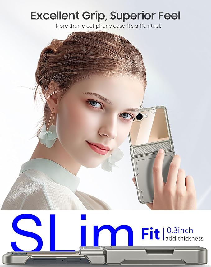 - [Full Hinge Protection] The Galaxy Z Flip 7 case hinge cover Innovative all-inclusive semi-automatic hinge technology, which fits closely with the hinge of the phone, and can easily capture and follow every flip movement, protecting your hinge from scratches or damage at all times. Upgraded hinge protection guards against scratches