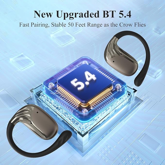 - Fast & Stable Connection: for This Open Ear Earbuds,Bluetooth 5.4 delivers ultra-low latency and a rock-solid connection up to 50ft. Pairs instantly with your phone. Intuitive touch controls manage music, volume, and hands-free calls effortlessly