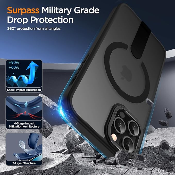 - [Durable Material] This i Phone 14 Pro max case combines a matte translucent back panel with durable polycarbonate material. The flexible TPU edges provide a comfortable hand feel while ensuring a secure, non-slip grip. The back surface resists fingerprints, while maintaining just enough transparency to subtly showcase your phone's original design. Reinforced corner protection absorbs impact from accidental drops