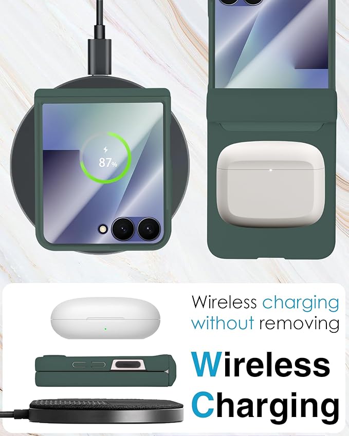 - [Slim and Lightweight Design] Our Galaxy Z Flip 7 case features an ultra-thin, lightweight profile that doesn't add any bulk to your phone. This Z Flip 7 case enhances your grip, reducing the likelihood of accidental drops while maintaining the phone's original elegance. Plus, this Z Flip 7 case supports wireless charging, so you never have to remove the case for charging.