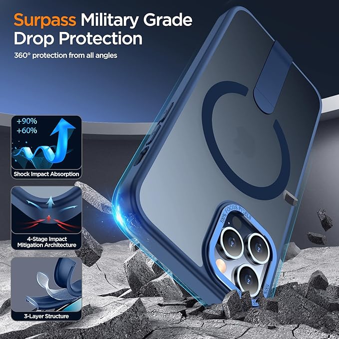- 【Military-Grade Certified Protection】 Designed for iPhone 14 Pro, this magnetic stand protective case features a premium 4 layer construction for multi-impact shock resistance. The shock-absorbing airbag technology and ultra-durable TPU material deliver defense exceeding military standards, safeguarding your phone from drops and impacts. Raised 1.5mm bezels protect both the screen and camera lens from scratches and damage, minimizing repair risks