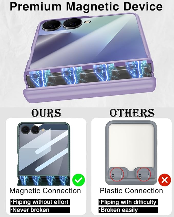 - [Advanced Hinge Protection]: Our Z Flip 7 case features an innovative hinge protection design specifically for the Galaxy Flip 7, providing complete protection from all angles. Our Z Flip 7 case is designed with a unique magnetic connection that won't be broken by impacts such as drops. Besides, our z Flip 7 case with unique design flips more smoothly without spring resistance.
