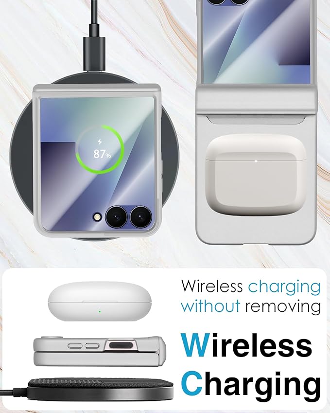 - [Slim and Lightweight Design] Our Galaxy Z Flip 7 case features an ultra-thin, lightweight profile that doesn't add any bulk to your phone. This Z Flip 7 case enhances your grip, reducing the likelihood of accidental drops while maintaining the phone's original elegance. Plus, this Z Flip 7 case supports wireless charging, so you never have to remove the case for charging.