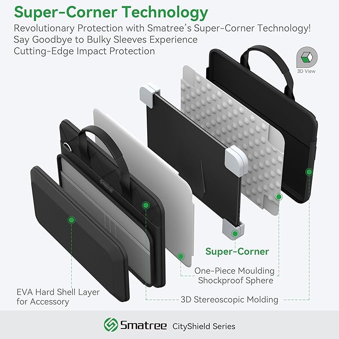 - Military-Grade Shield; Air-Light Carry: Our Patented Super Corner targets 90% of laptop impacts at 4 critical impact corners - eliminating wasteful padding elsewhere. Result? More lighter than normal bag while passing 3m military drop tests