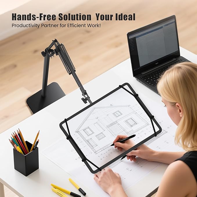 - Sturdy Material & Easy Installation:Crafted with high-quality metal and a reinforced anti-slip base (weighs 2.76 lb), this tablet stand guarantees long-lasting durability and reliable stability during use.No tools required—effortlessly assemble or disassemble in just 3 simple steps following the manual, making it portable and space-efficient.(Note:Please keep the arm and base in the same direction, otherwise press the base with a heavy object)