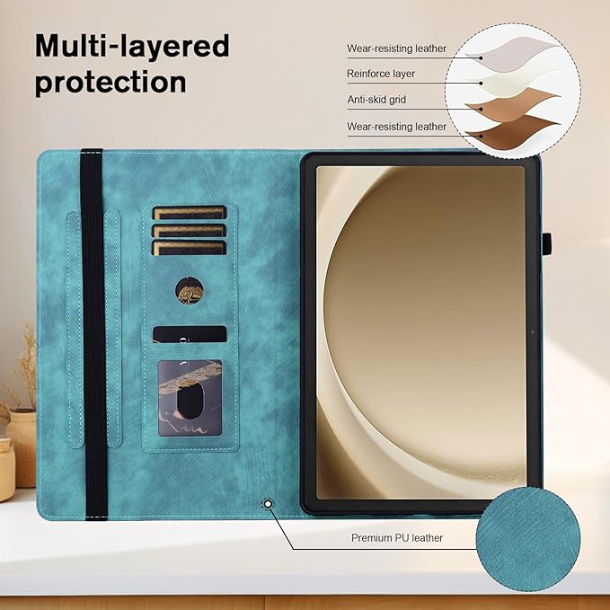 - [Multi-card slot] Built-in card slots can store your business cards, bank cards, notes, bills or other personal belongs while on the go. There is a pen sleeve on the side of the protective cover for placing the pen.