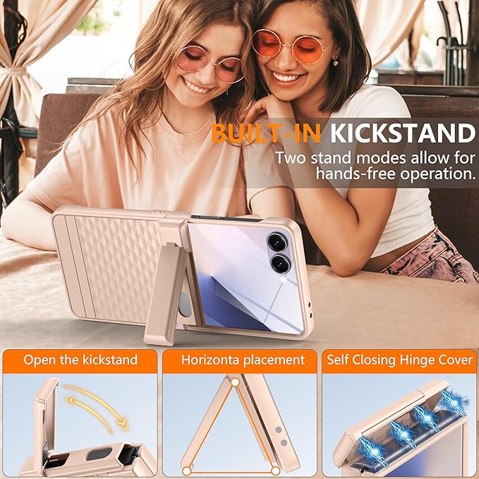 - 【Hidden Kickstand】This Samsung Galaxy Z Flip 7 case comes with a built-in stand that can be placed horizontally, whether you are reading, watching a movie, browsing the web, or video chatting with friends, this case provides the best viewing experience and prevents you from back, neck and wrist pain