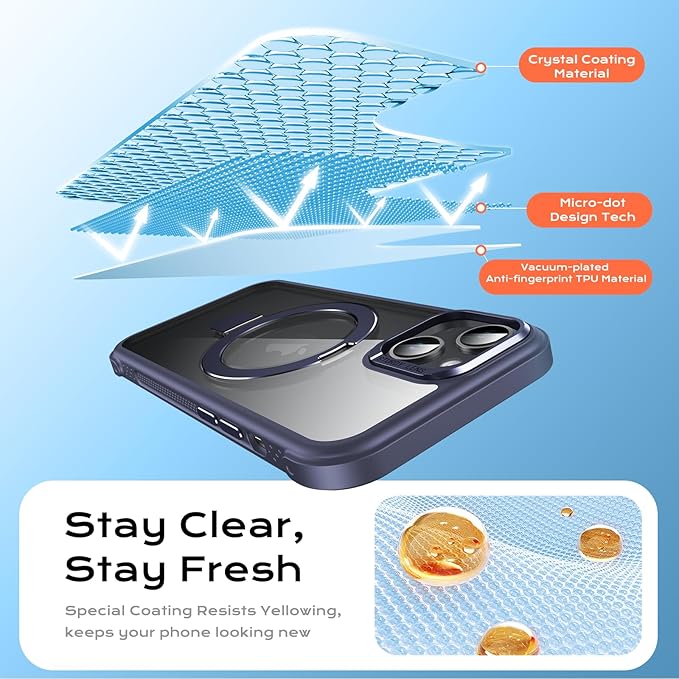 - [Secure & Strong Magnetic Loop] Fully Mag-Safe compatible, this transparent iPhone 13 kickstand case features a powerful built-in magnet with Halbach-Mag technology and N52SH magnets, providing a secure connection with accessories like leather wallets, wireless chargers, and car mounts. The iPhone 14 shockproof crystal clear case offers 40% stronger magnetic force (18N) than standard cases, ensuring a stable, wobble-free attachment. Designed for iPhone 14/13, this case aligns perfectly with your device, ensuring a stable, wobble-free attachment experience