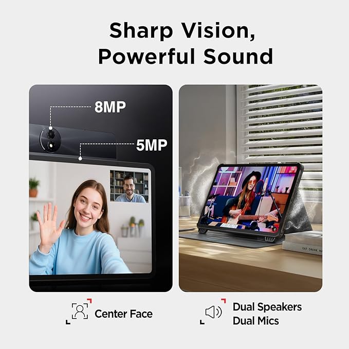 - See Clearly, Hear Perfectly: The TCL NXTPAPER 11 Gen 2 tablets feature a 5MP FF front and 8MP AF rear camera (with flash) supporting 1080p video recording — perfect for video meetings, online classes, or family moments. Dual speakers and mics with volume boost up to 200% ensure you hear and speak clearly, even in noisy places. Plus, CenterFace technology keeps you perfectly centered on Zoom, Google Meet, and Microsoft Teams for smooth, natural conversations