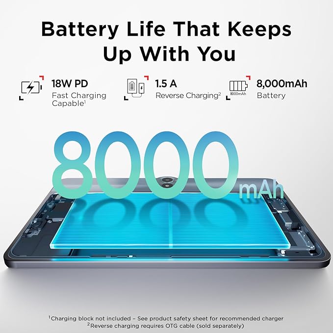 - Long Battery Life with Reverse Charging: The TCL NXTPAPER 11 Gen 2 Android tablet is equipped with a powerful 8000mAh battery that easily lasts through a full day of study, work, and entertainment. With 18W PD fast charging, you’ll spend less time plugged in and more time on the go. Even better, it supports reverse charging—so you can power up your phone, earbuds, or other devices anytime, anywhere