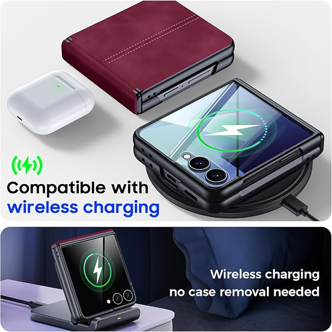 - [COMPATIBILITY] Stylish Leather Lightweight Protective Case Only Compatible with Samsung Galaxy Z Flip 7, NOT compatible with Z Flip 7 FE. Pocket-friendly design is suitable for men and women of all ages, supports wireless charging