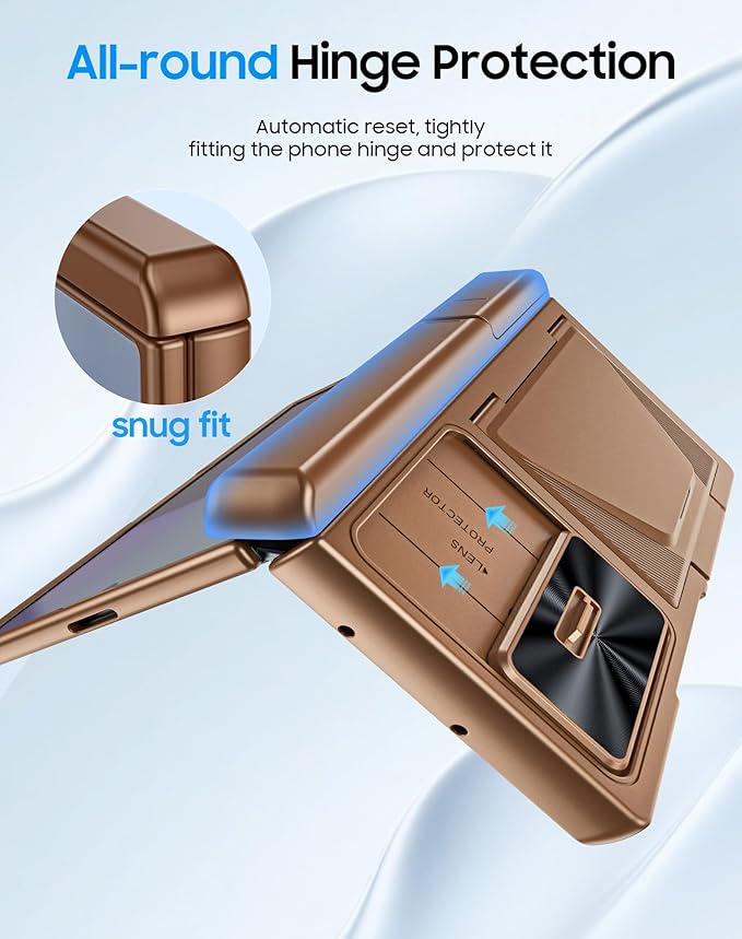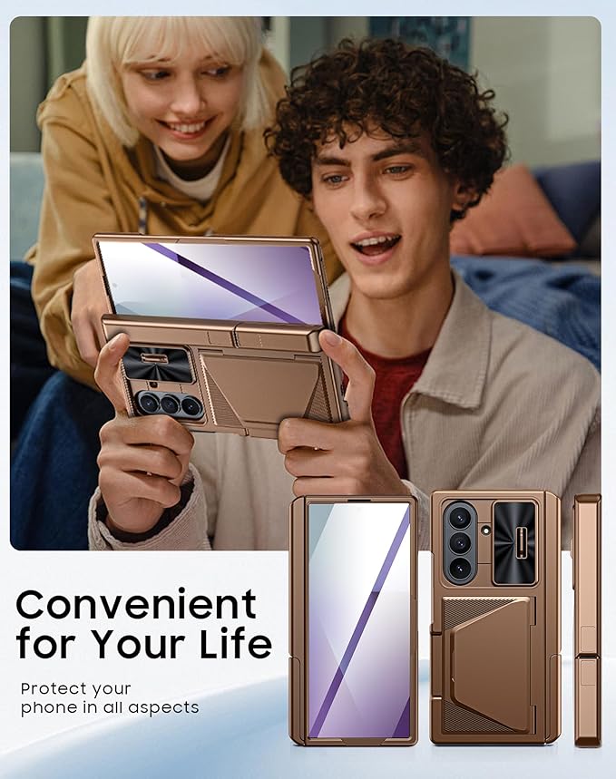 - Sliding Lens Protective Cover: This Galaxy Z Fold 7 case built in sliding camera lens cover. The newly designed sliding camera cover has a more sensitive slide rail and a safer lock than previous versions. The grinding mark on the lens cover and the raised side design allow you to slide the lens cover more easily. When you don't need to use the camera, you can fully cover the camera lens with just one second to protect your Galaxy Z Fold 7 phone lens from scratches and damage.