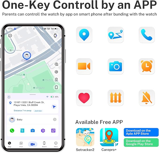 - ⌚[Real-Time GPS Positioning] With this latest gps tracker watch for kids, you can look your kid's location in real-time, as well as historical routes. You can also set customized safe zones, and receive alerts on your phones if kids leaves the designated area.You need to scan the QR code on the back of the kids gps watch to download the ‘setracker 2’ app and bind your phone, then you can access more features of this watch.