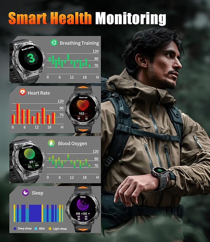 - 🌟【24/7 Health Guardian】Large smart watch utilizes advanced sensors to monitor your heart rate and stress levels in real time, keeping continuous monitor of your health status. It provides comprehensive sleep quality analysis, including deep sleep, light sleep, and REM sleep stages. The companion app offers detailed health reports to help you build healthier habits.