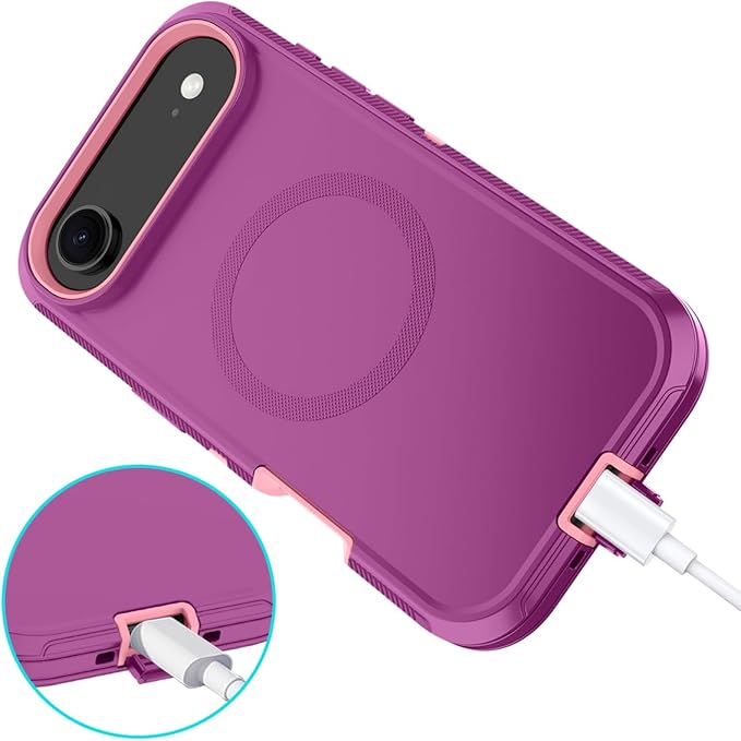 for iPhone Air Case/iPhone 17 Air Case [Compatible with MagSafe] Shockproof 3-Layer Full Body Protection [Without Screen Protector] Rugged Heavy Duty Cover for Apple iPhone Air,Purple/Pink