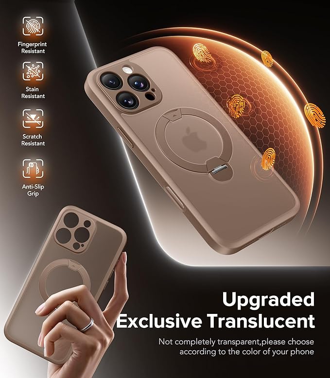 - Upgraded 3-in-1 Easily Foldable & Durable Stand: This case integrates magnets, a 360° rotating kickstand, and a ring holder into one seamless design. The kickstand is constructed from aerospace aluminum alloy. The reinforced hinge offers greater durability and drop resistance than regular stands, allowing for smooth rotation between 0° and 120° and making stable phone use effortless—your dependable choice for peace of mind