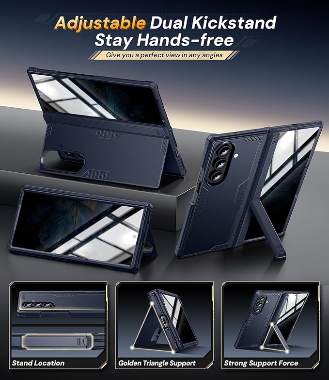 - 【Sturdy Adjustable Foldable Dual Kickstand】Tired of holding your phone? This Fold7 case is your hands - free savior. Its hidden vertical & horizontal kickstand adjusts to any angle, perfect for binge - watching shows, joining video calls, reading e - books, or following cooking tutorials.The ingenious kickstand folds completely flat, adding zero bulk to your pocket or bag. Rigorously tested 12,000 times, it offers rock - solid stability on desks, during flights, or beside your bed