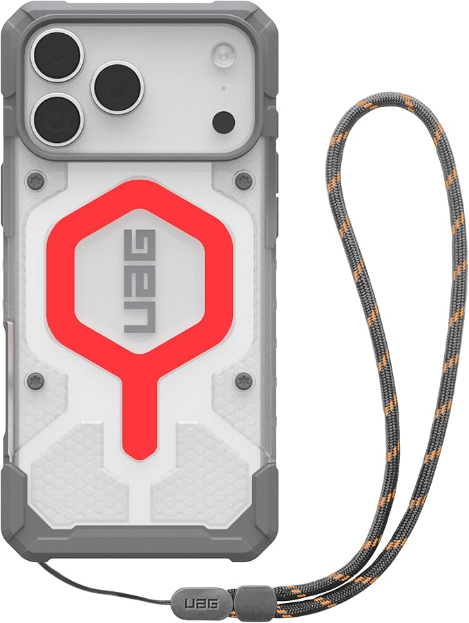 URBAN ARMOR GEAR UAG Designed for iPhone 17 Pro Max Case Pathfinder Clear + Wrist Lanyard Bundle - Compatible with MagSafe Military Grade Protective Cover, Active Lava