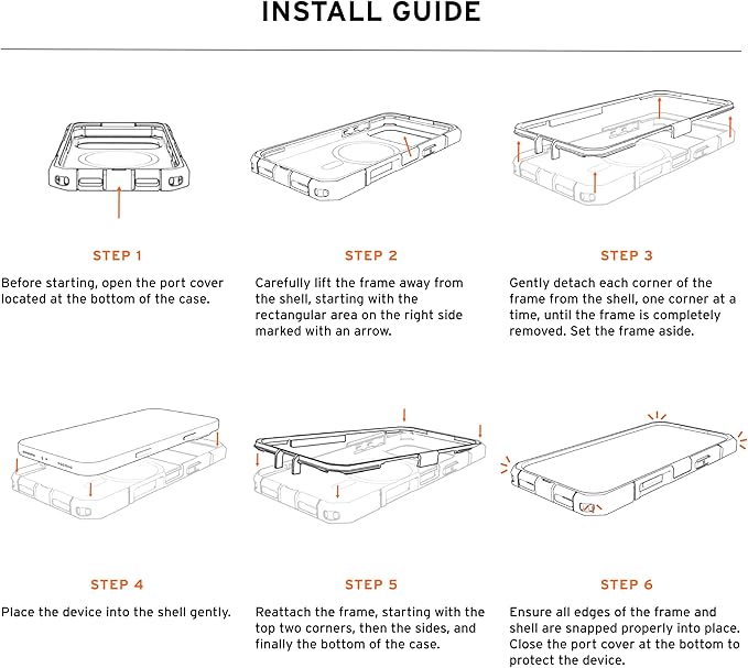 - 2-Piece Design: This ultra-protective case features a two-piece design with a rugged, translucent back and a durable front frame (no built-in screen protector) and a covered charging port. The port cover helps keep out dirt, dust, and lint to protect your device’s connection. It pairs perfectly with UAG screen protectors and is also compatible with most third-party options.