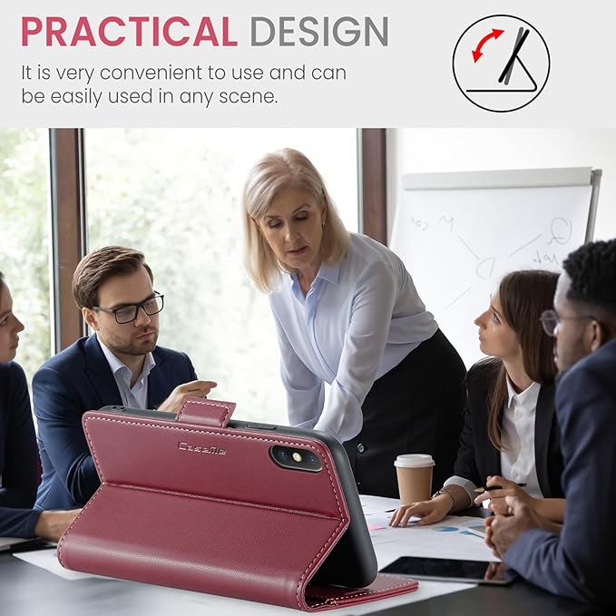 - [Multifunctional] This iPhone X/XS Flip Wallet Leather Case with Adjustable Stand frees up your hands by allowing you to watch videos or movies at the best angle.Whether you're studying,working,exercise or entertainments, this wallet case will meet your needs.