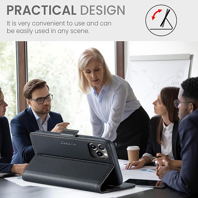 - [Multifunctional] This iPhone 11 Pro Max Flip Wallet Leather Case with Adjustable Stand frees up your hands by allowing you to watch videos or movies at the best angle.Whether you're studying,working,exercise or entertainments, this wallet case will meet your needs.