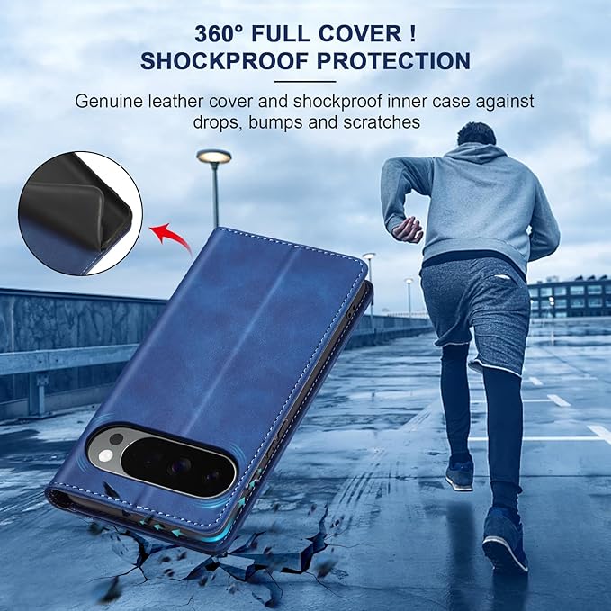 Jasonyu Flip Wallet Case for Google Pixel 10 Pro XL 5G,Leather Magnetic Folio Cover with Card Holder,Kickstand - TPU Shockproof Durable Protective Phone Case,Blue