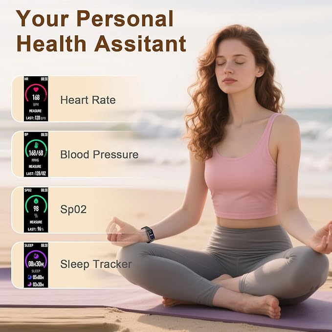 - 24-Hour Health Companion: Activity tracker monitors your heart rate 24/7 with a high-performance optical sensor,allowing you to stay tuned to your heart’s rhythm at any time. At night it automatically switches to sleep-tracking mode to deeply analyze your awake,light,and deep sleep stages—helping you scientifically improve your sleep habits and wake up with more energy.