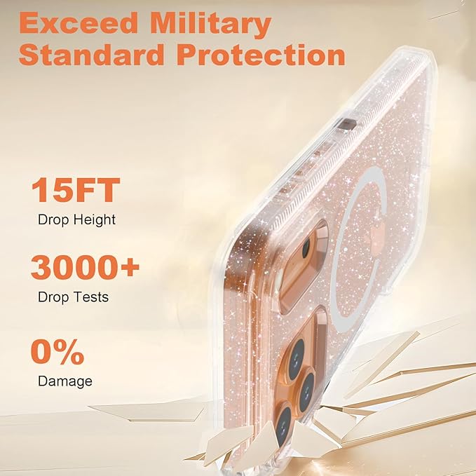Designed for iPhone 17 Pro Max Case,[Compatible with Magsafe] [Non-Yellowing] [Without Screen Protector] Shockproof/Dust/Drop Proof 3-Layer Full Body Protection Rugged Heavy Duty Cover, Clear Glitter