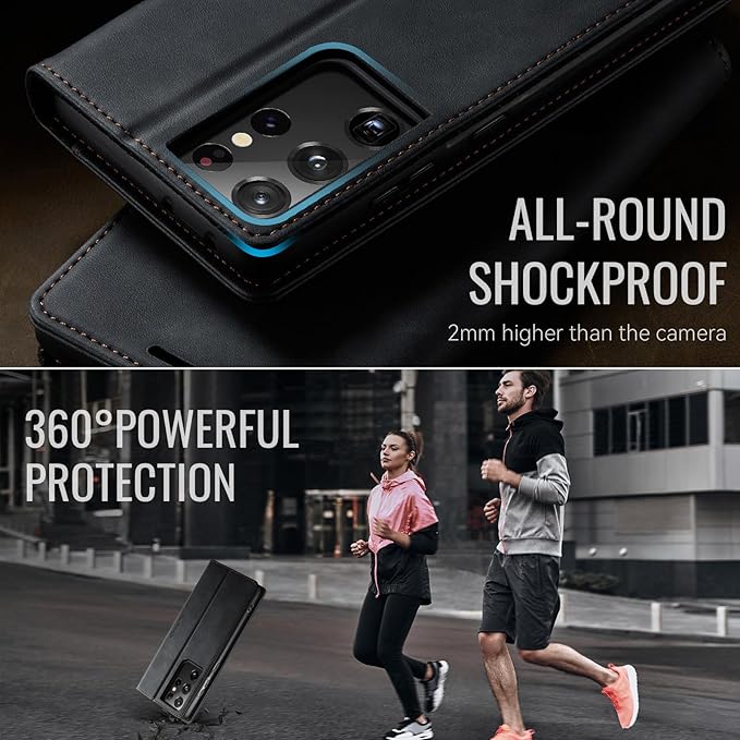 - [Compatibility] Premium leather case compatible only with Samsung Galaxy S21 Ultra (6.8"). Please kindly check your phone model before purchasing. Thanks! The precision fit of the leather case allows always easy access to all ports, buttons and cameras on your phone. Protect your phone from dust, scratches and bumps.