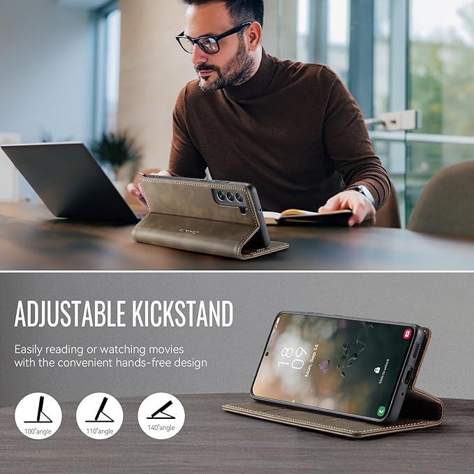 - [Quality Material] This protective Samsung S21 FE leather case is made from premium leather cover and soft TPU inner bumper, provides comfortable touch feeling and texture look, Avoid finger print and dirt, anti shocks and drops.
