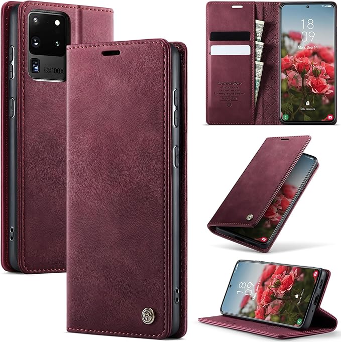 - [Compatibility] Premium leather case compatible only with Samsung Galaxy S20 Ultra (6.9"). Please kindly check your phone model before purchasing. Thanks! The precision fit of the leather case allows always easy access to all ports, buttons and cameras on your phone. Protect your phone from dust, scratches and bumps.