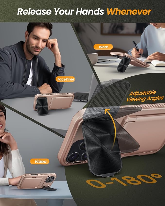 - ✅[FIND YOUR PERFECT ANGLE, EASILY] SIXBOX innovative phone case for iPhone 17 Pro Max isn't just armor for your precious device, it's a game-changer for how you use your phone every day. Our case for iPhone 17 Pro Max comes with camera cover stand rotates smoothly from 0° to 180°. Find your perfect viewing angle in an instant – whether you're binge-watching shows landscape-style, video chatting portrait-style, following recipes, or capturing group photos. Rock-solid stability means no wobbles, just pure enjoyment. Sleek aesthetics meet powerful functionality, elevate your iPhone 17 Pro Max experience. This is more than a case, it's your key to a smarter, more convenient mobile lifestyle