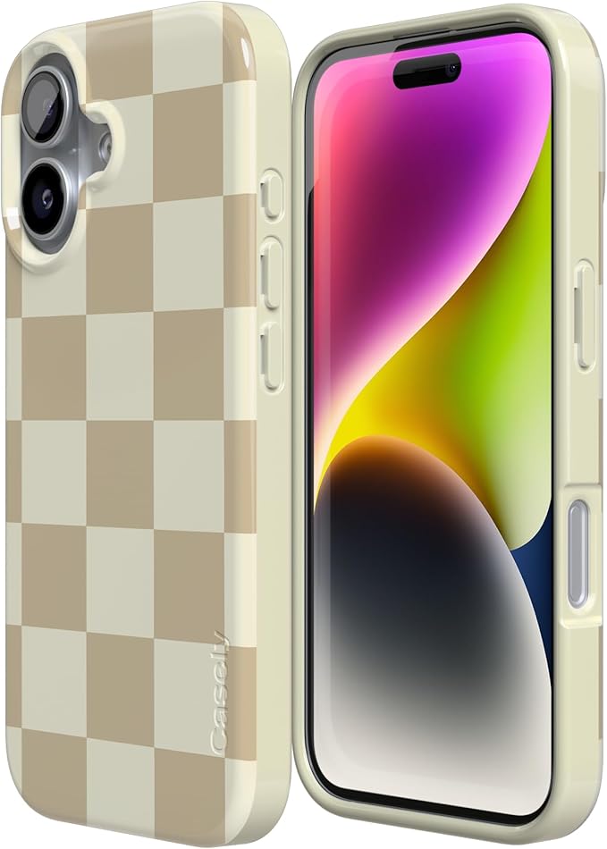Casely iPhone 17 Case | Fit Check | Neutral Checkerboard | Compatible with MagSafe | Classic Ultra Slim Design