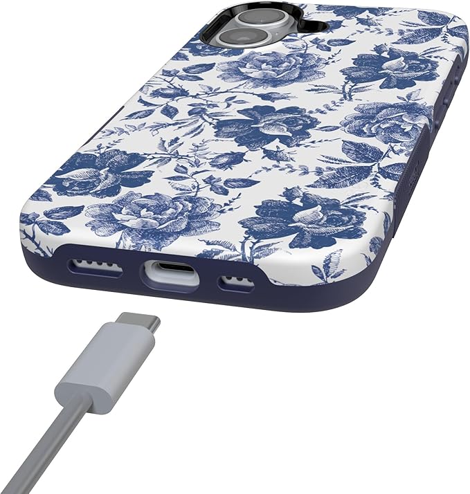 Casely iPhone 17 Case | Rose to Fame | Blue & White Rose Floral | Compatible with MagSafe | Bold Protective Design