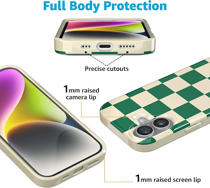 Casely iPhone 17 Case | Fit Check | Green Checkerboard | Compatible with MagSafe | Classic Ultra Slim Design