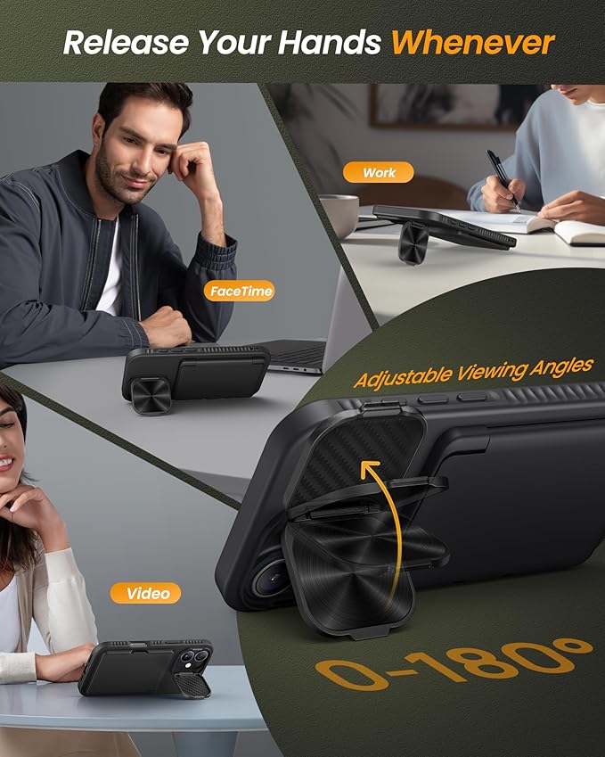 - ✅[FIND YOUR PERFECT ANGLE, EASILY] SIXBOX innovative phone case for iPhone 17 isn't just armor for your precious device, it's a game-changer for how you use your phone every day. Our case for iPhone 17 comes with camera cover stand rotates smoothly from 0° to 180°. Find your perfect viewing angle in an instant – whether you're binge-watching shows landscape-style, video chatting portrait-style, following recipes, or capturing group photos. Rock-solid stability means no wobbles, just pure enjoyment. Sleek aesthetics meet powerful functionality, elevate your iPhone 17 experience. This is more than a case, it's your key to a smarter, more convenient mobile lifestyle