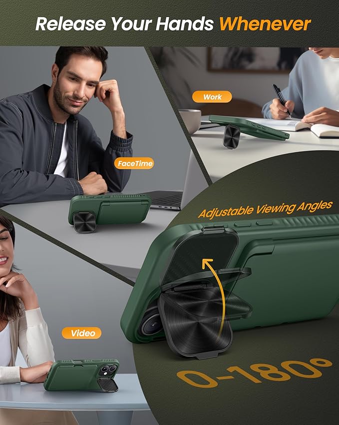 - ✅[FIND YOUR PERFECT ANGLE, EASILY] SIXBOX innovative phone case for iPhone 17 isn't just armor for your precious device, it's a game-changer for how you use your phone every day. Our case for iPhone 17 comes with camera cover stand rotates smoothly from 0° to 180°. Find your perfect viewing angle in an instant – whether you're binge-watching shows landscape-style, video chatting portrait-style, following recipes, or capturing group photos. Rock-solid stability means no wobbles, just pure enjoyment. Sleek aesthetics meet powerful functionality, elevate your iPhone 17 experience. This is more than a case, it's your key to a smarter, more convenient mobile lifestyle