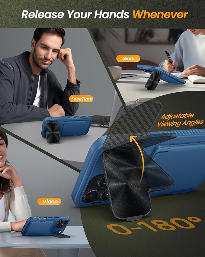 - ✅[FIND YOUR PERFECT ANGLE, EASILY] SIXBOX innovative phone case for iPhone 17 Pro Max isn't just armor for your precious device, it's a game-changer for how you use your phone every day. Our case for iPhone 17 Pro Max comes with camera cover stand rotates smoothly from 0° to 180°. Find your perfect viewing angle in an instant – whether you're binge-watching shows landscape-style, video chatting portrait-style, following recipes, or capturing group photos. Rock-solid stability means no wobbles, just pure enjoyment. Sleek aesthetics meet powerful functionality, elevate your iPhone 17 Pro Max experience. This is more than a case, it's your key to a smarter, more convenient mobile lifestyle