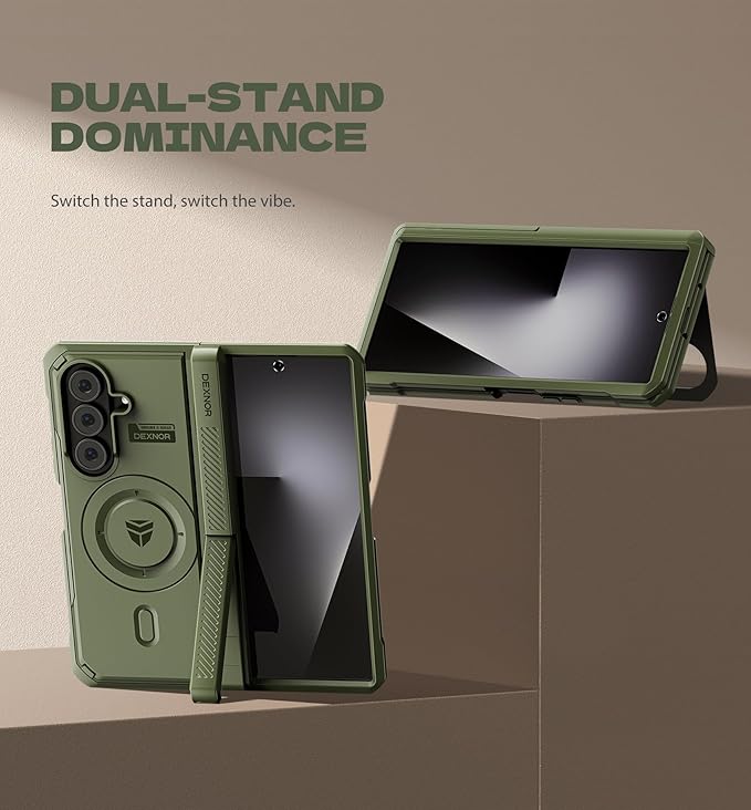 Dexnor Magnetic for Samsung Galaxy Z Fold 7 Case with Dual Kickstands & Front Screen Protector & Hinge Protection, Compatible with MagSafe, Full-Body Rugged Protective Cover Bumper Cases,Army Green