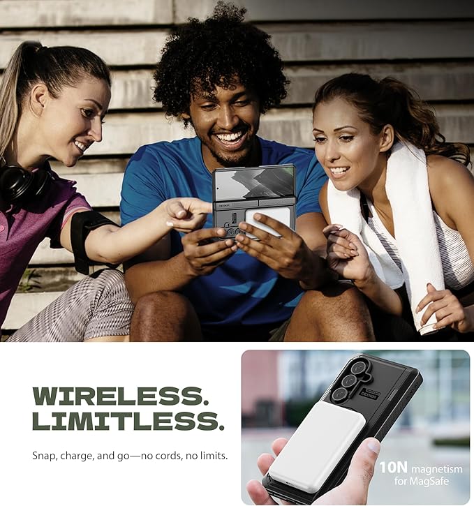 - Unmatched magnetism: Power up your adventure with up to 10N of magnetic force—seamlessly compatible with MagSafe chargers and accessories. Snap on a battery pack mid-hike, or attach your Z Fold 7 to a car mount for hands-free navigation.