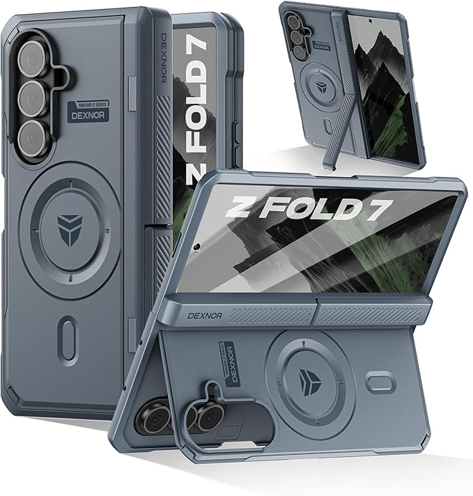 Dexnor Magnetic for Samsung Galaxy Z Fold 7 Case with Dual Kickstands & Front Screen Protector & Hinge Protection, Compatible with MagSafe, Full-Body Rugged Protective Cover Bumper Cases,Navy Blue