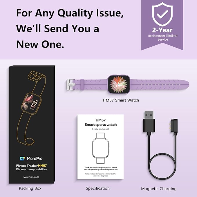 - 【Women's Health Guardian】 MorePro Smart watches for women accurate cycle tracking & fertility insights. Log and predict menstrual periods, ovulation windows, and fertility phases with AI-powered algorithms. The health watch receive reminders 3 days before your period starts and ovulation alerts—ideal for pregnancy planning or natural contraception support.