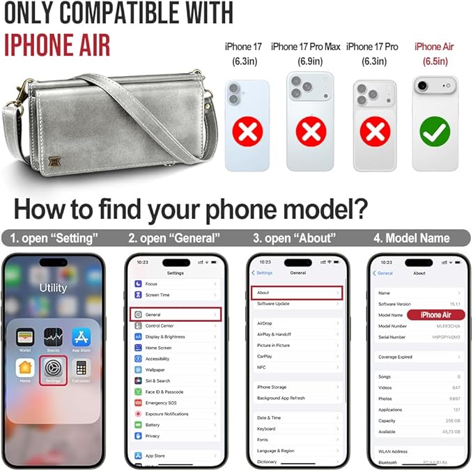 - 【Compatible Model】: Soft comfortable Faux Leather case only compatible with iPhone 17 Air; Please double check the mobile phone model before you place order(Settings – General – About – Model Name) ,or contact us if you have any questions any time. QIXIU company own factory and professional sales,no matter when,we are responsible for our products and our customer.