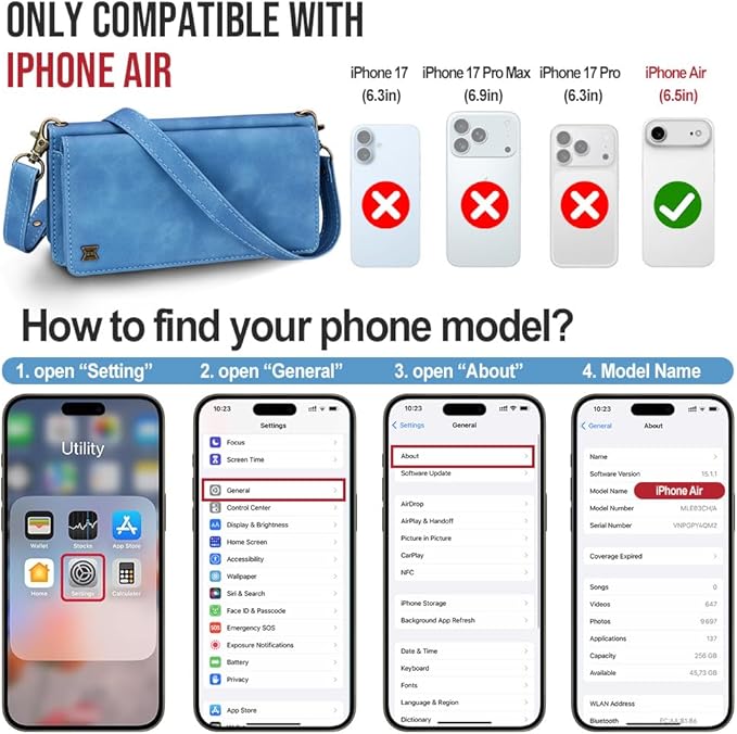 - 【Compatible Model】: Soft comfortable Faux Leather case only compatible with iPhone 17 Air; Please double check the mobile phone model before you place order(Settings – General – About – Model Name) ,or contact us if you have any questions any time. QIXIU company own factory and professional sales,no matter when,we are responsible for our products and our customer.