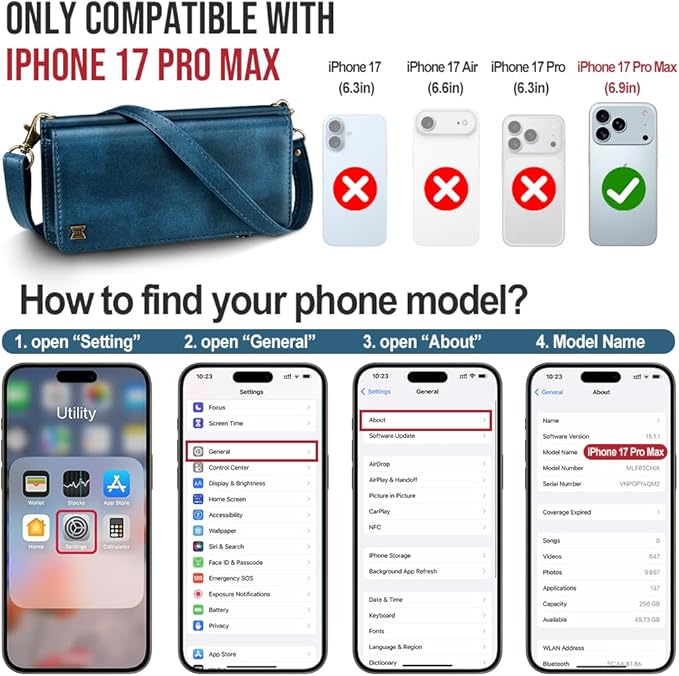 - 【Compatible Model】: Soft comfortable Faux Leather case only compatible with iPhone 17 Pro Max; Please double check the mobile phone model before you place order(Settings – General – About – Model Name) ,or contact us if you have any questions any time. QIXIU company own factory and professional sales,no matter when,we are responsible for our products and our customer.