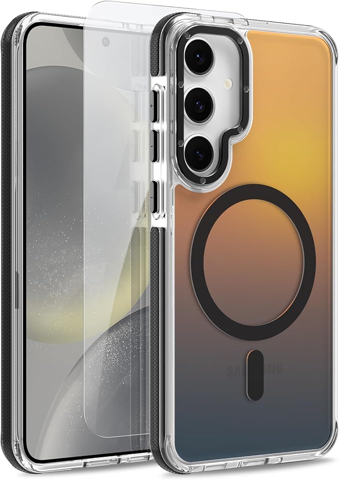 MOWIME Magnetic Case for Samsung Galaxy S24 [Compatible with Magsafe] [Cute Fashion Fluorescent Design] [1 Screen Protector] Slim Translucent Matte Case for Galaxy S24 6.2", Black