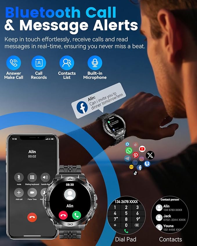 - 【24/7 Health Tracking】 This mens smartwatch features built-in optical sensors that deliver 24/7 health monitoring, including precise SpO2, heart rate and in-depth sleep stage analysis. With 24/7 tracking,you can empowering you to make lifestyle adjustments for better rest and overall well being. (Please note: All health data is provided for general wellness reference and self-awareness purposes only. This device is not a medical-grade diagnostic tool and should not be used as a substitute for professional medical advice.).