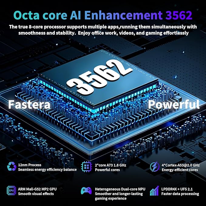 - 【8000mAh + AI Camera 8MP / 5MP】Tablet has a built-in 8000mAh battery with upgraded battery life to provide you with longer usage time. Equipped with USB Type-C + separate 3.5mm headphone jack to meet various needs. 5MP front camera and 8MP rear camera can meet the needs of daily photography and video calls